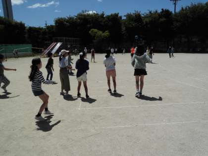 みんな遊び係が計画してくれたみんな遊びタイム。天気もよく、青空の下、たくさん汗をかきました。