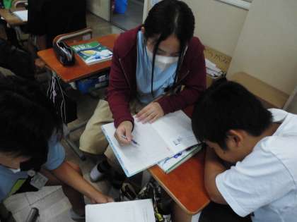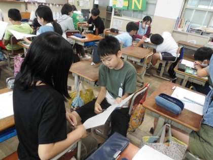 「分数×分数」の考え方について自分の考えを伝え合いました。