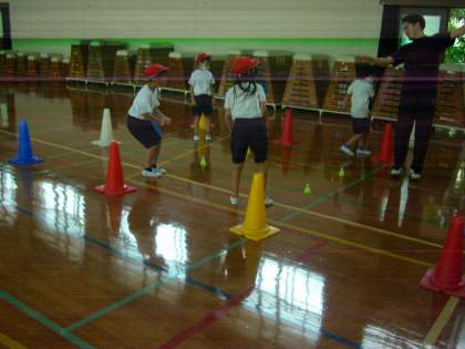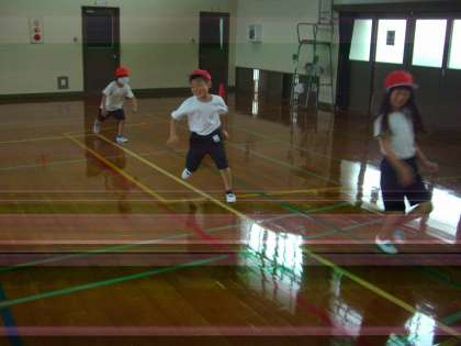 体育館であおぞら学級の体育をしました。体育館の線を使って,おにごっこをしました。ルールをしっかり守って活動をすることができました。