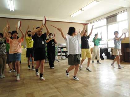 交通安全区民大会に参加する人たちが自主練習をしています。キレッキレの踊りと元気いっぱいの掛け声が素敵です。