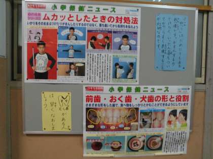 保健室の掲示板です。怒りのコントロールの方法やヒントが書いてあります。『歯』の働きについて書いてあります。また時間のある問いに読んでみてくださいね。