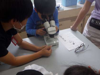 双眼実体顕微鏡を使って、種子を観察しました。精密に見えることに驚き、喜んでいました。