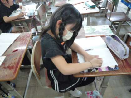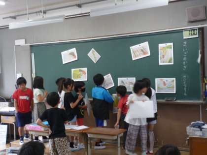 まずは、教科書に出てくる挿絵を黒板にはり、