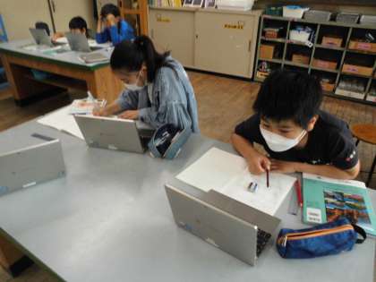 今日はタブレットと図書室で調べ学習をしました。人の体のつくりについてそれぞれが集中して調べていました。さすがです。