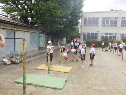 鉄棒で、技の組み合わせや連続技を考え、練習しました。