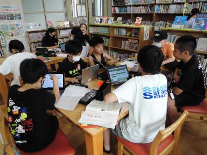 国語の時間に図書室で調べ学習をしました。目的に合った本を選び、報告書を作成します。
