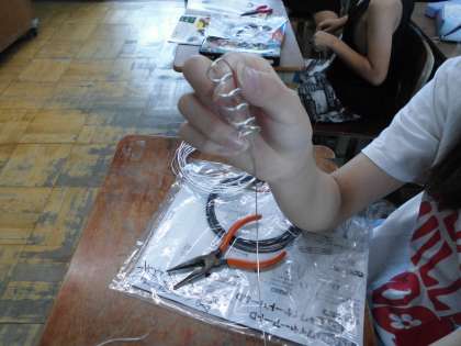 ワイヤーを使った立体工作。まずはワイヤーの性質を知ろう!仲良くなろう!ということで、ねじったり、曲げたり、伸ばしたりしてみました。どんな風に立ち上がらせようと想像をふくらませていました。
