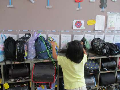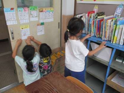 道徳の学習で、身のまわりをきれいにすることについて考えました。お話に出てくる男の子の気持ちを考えた後は、自分たちの身の回りの場所できれいにできるところはないかを考えて実践しました。「きれいにするって気持ちがいい。」「自分のものだけでなく人のものも大事。」「嬉しいな。」などと、きれいにすることのよさを十分に感じていました。
