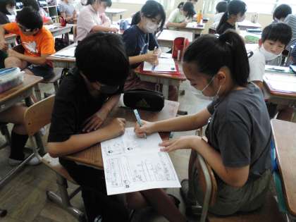 割る数が1になるように考えるとどのような計算になるのか考えを伝え合いました。