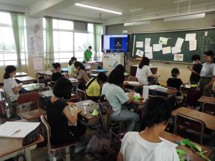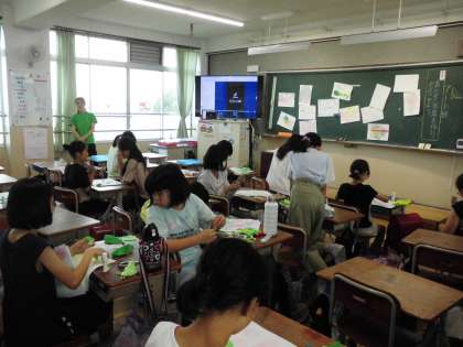 絵具と折り紙を使ってそれぞれにアジサイの花を描きました。個性豊かな美しい花が咲きました。