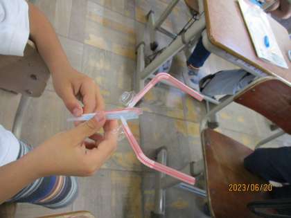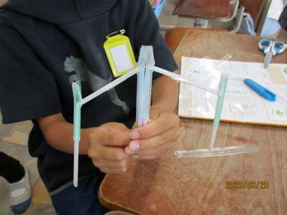 ストローを組み合わせて、ストローの動く仕組みを作りました。
