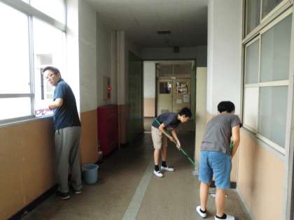 教頭先生と一緒に掃除です。いつもよりモップ掛けに力が入ります!いつもありがとう!