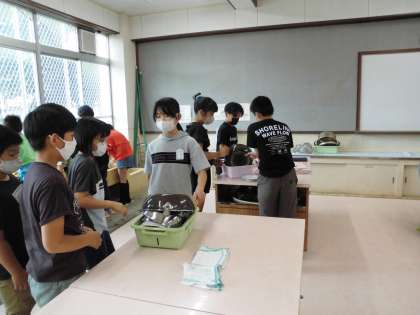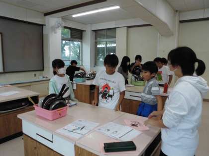 明日の調理実習に向けて、グループで役割を確認し、道具の確認をしました。