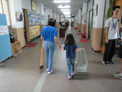 ごみをどこに捨てればよいのか、困っていた1年生に6年生が優しく声を掛けて教えてあげていました。素敵ですね。