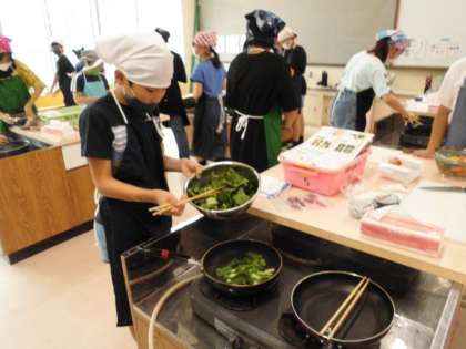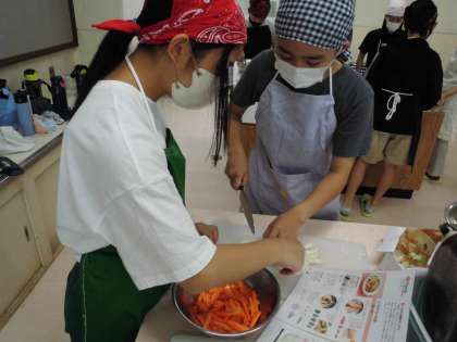 仲良く協力して取り組んでいます。包丁の扱い方もとても上手です。