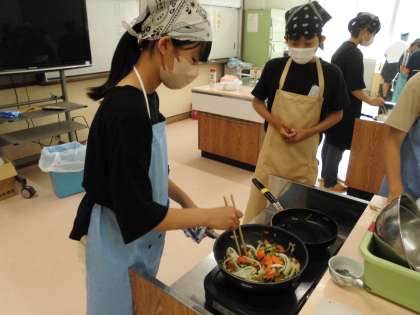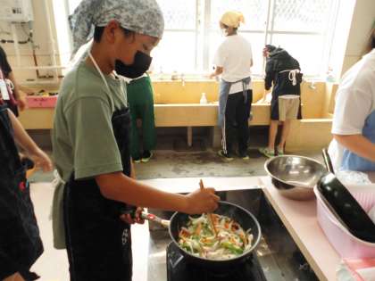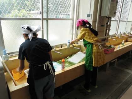 料理もしながら使い終わった道具の片づけも分担して取り組んでいます。素晴らしいです。