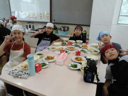やったぁ〜!みんなで協力しとても美味しそうな「いろどりいため」と「青菜の油いため」の完成です。