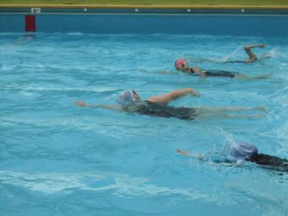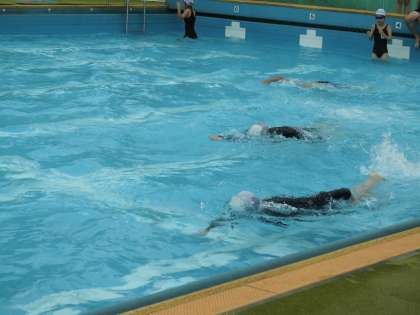ねらい1、ねらい2でそれぞれの目標を立てて取り組んでいます。クロールの息継ぎ、平泳ぎの足の使い方、クロールの手のかき方など、それぞれが自分の課題に気づき、練習に励んでいます。何度も確かめながらコツを見つけていこう!