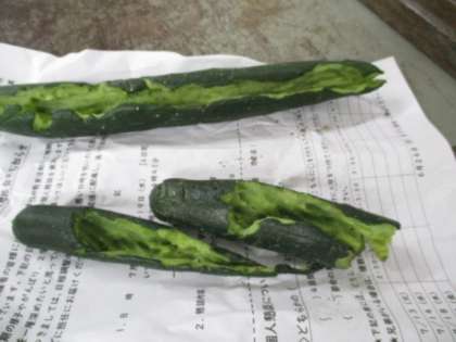 畑に植えたきゅうりが大きくなってきたので,そろそろ収穫だと思っていたのですが・・・