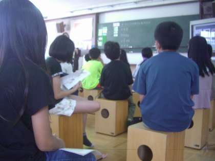 音楽で鑑賞をしました。自分の感じたことを言葉にすることにチャレンジしていました。いろいろな音楽の言葉の中から自分がしっくりきた言葉を選び、ワークシートに書くことができました。言葉を選べて満足している様子でした。