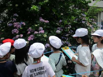生活科の学習で、学校内の夏を探しに行きました。