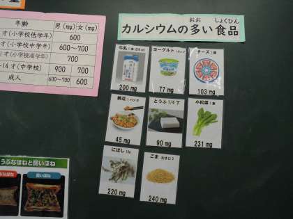 3時間目の学活の食の指導で、カルシウムの大切さを学びました。