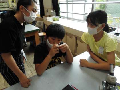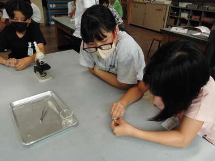 今日は水が葉のどこから水蒸気として出ていくのかを「つゆ草」の葉を使って、顕微鏡で調べました。葉の裏側の薄い皮をはがすのに随分苦労していました。