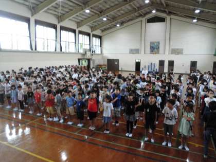7月の朝会です。1学期もあと少し、頑張れたこと、まだまだ頑張らなくてはいけないことなどを振り返りました。しっかり話を聞くことができていました。さすがです。
