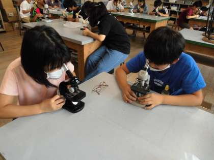 池の水の中にどのような生き物がいるのかを顕微鏡を使って観察しました。調べて分かったことをノートにまとめました。
