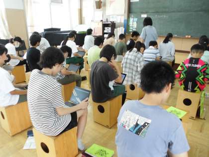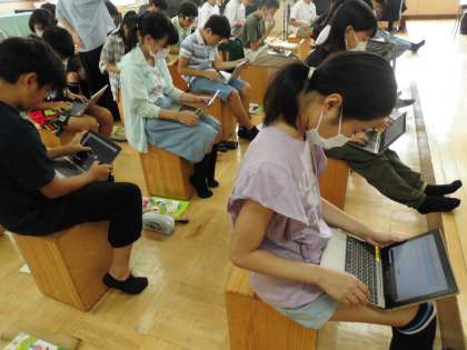 「ふるさと」の歌を知っているか、家の人に聞いてきたことをみんなで集計しました。「知っている」が7割、日本らしい懐かしい曲や3番の歌詞に心をひかれたという意見がありました。