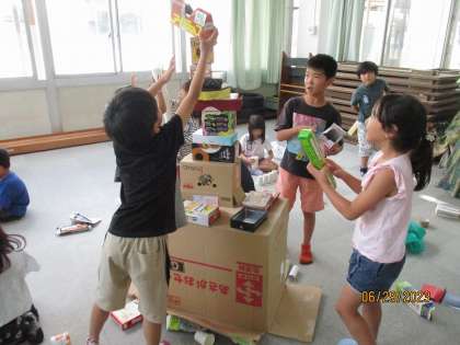 少し前の学習ではありますが、図工科で、箱やカップをつかって造形遊びをしました。積み上げたり、並べたりしていくうちに、「いっしょにやろう。」「もっと高くなるかな!」「繋げていこう。」などと、友達と協力して楽しんで学習に取り組んでいました。
