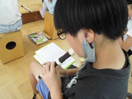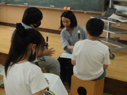 「ふるさと」をきれいな声で歌ったり、リコーダーの指を何度も確かめたりして活動しています。夏休みに練習しますが、それまでにしっかりと指の確認をしておきましょう。