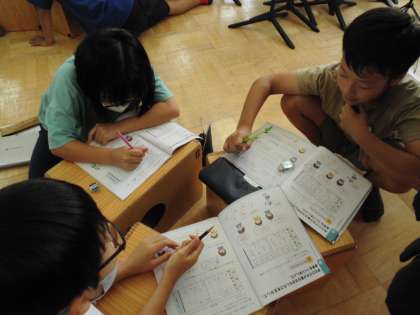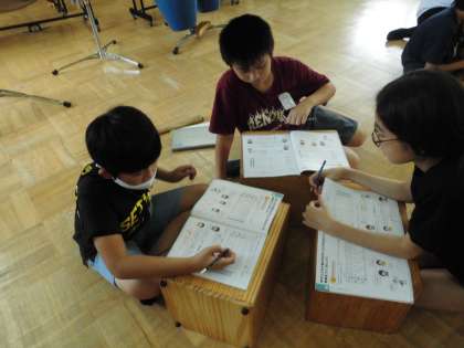 グループに分かれて様々なリズムを考えました。どんなリズムが出来上がるのか、楽しみですね。