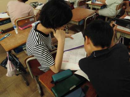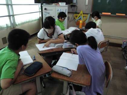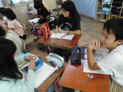 漢字クイズにチャレンジしました。漢字辞典や国語辞典を使って調べています。クイズの答えが県名ということもあり、地図帳も出してきてみんなで話し合っています。みんな夢中で調べていました。