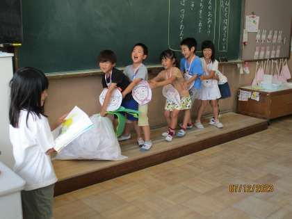 大きなかぶの音読発表会をしました。表情を変えたり、セリフを付け加えたりと工夫して、グループで楽しむ姿が見られました。