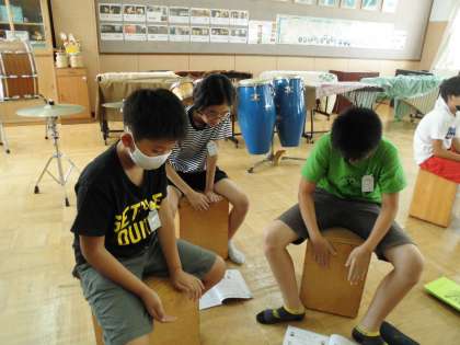 グループごとに考えてつくったリズムをみんなに発表しました。