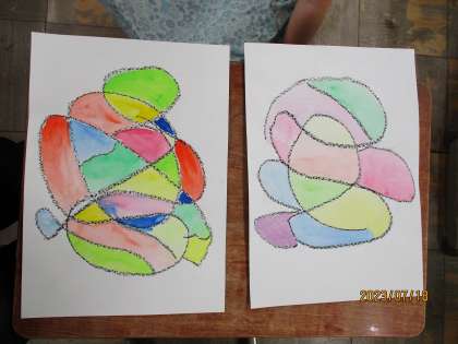 1回目は単色で水と混ぜてでる色を楽しみました。