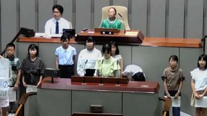 本稿の6年生が「こども議会」に参加しました。議会議場でグループに分かれて知事に意見を伝えていました。よく頑張っていました。