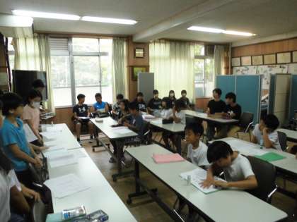 2学期最初の代表委員会です。9月の生活目標は「遊び方を見直そう」です。各委員会からは、トイレのスリッパを整えるように、などの連絡がありました。