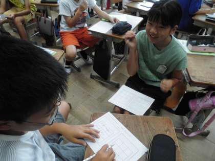 今日は夏休みの出来事を訪ね合いました。5年生のときに習ったことも活かして活動していました。