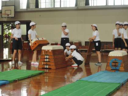 今日のとび箱運動では、「踏み切り板で膝を曲げて沈み込まず、はじくように踏み切る」というコツが意見として出ました。徐々にレベルアップする姿も見られています。また、場を作る時や活動の移り変わりがとても早くなったと思います。時間を上手に使ってたくさん活動してほしいと思います。
