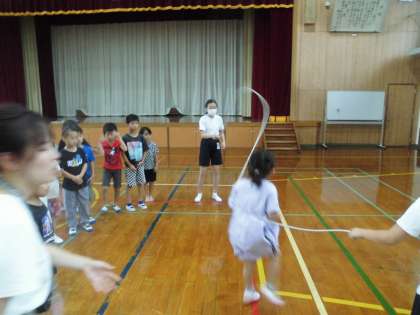 雨で大縄ができないときは、体育館で取り組んでいます。1年生は初めての取り組みですが本番に備えて頑張っています!
