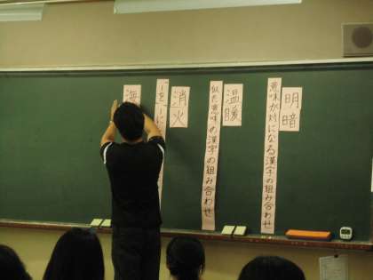 今日は実習生と熟語の成り立ちを考えました。熟語の作りにはいろいろな意味があることを知りました。