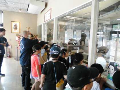 社会見学で,おたべや八ッ橋の工場に行きました。授業で調べたことを見たり,調べた以上に詳しく知ることができ,興味津々の様子でした。
