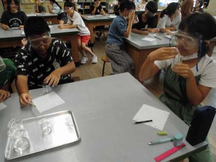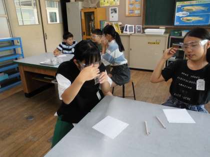 「水溶液」を調べます。見た目はどれも同じようだけれど…?においでみよう。