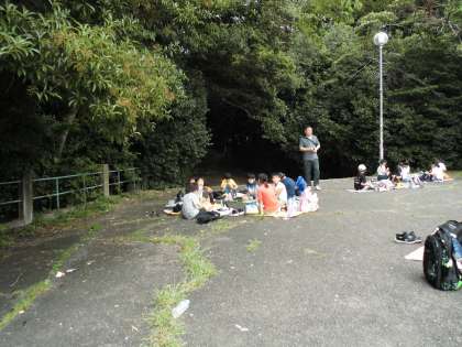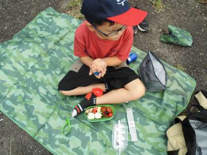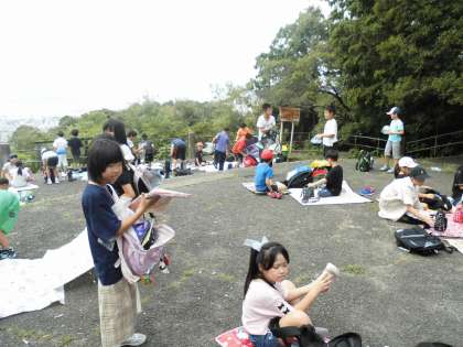 社会見学 将軍塚でお弁当を食べました。思い思いの友達とシートを広げて楽しくお弁当を食べていました。