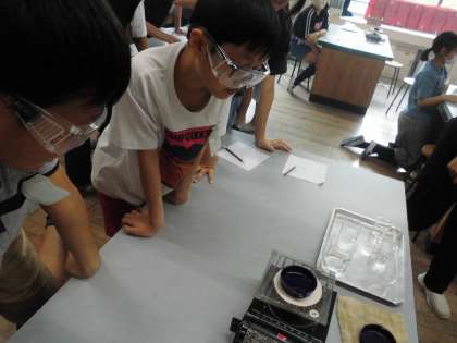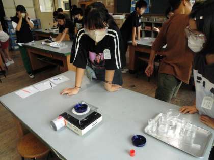 蒸発皿の様子を観察中!