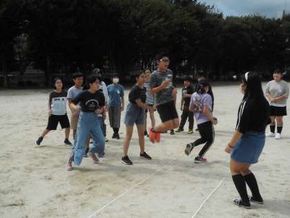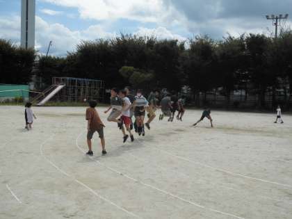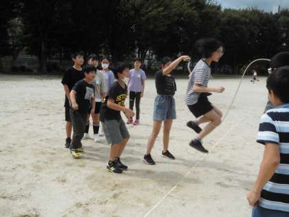 息を合わせて「せ〜のっ」暑さに負けずに元気いっぱい頑張っています。むっちゃええやん!