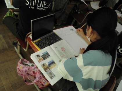 お気に入りの国について調べたことをまとめています。工夫がいっぱい!素敵に仕上がりそうです。