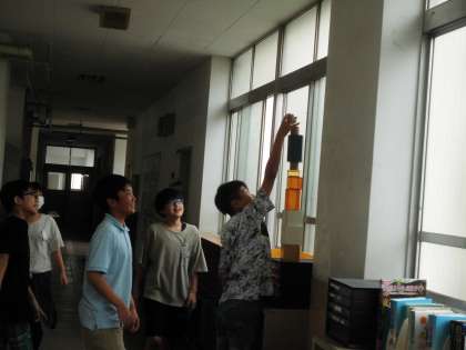 廊下で立体模型で遊んでいますね。楽しそうですね。